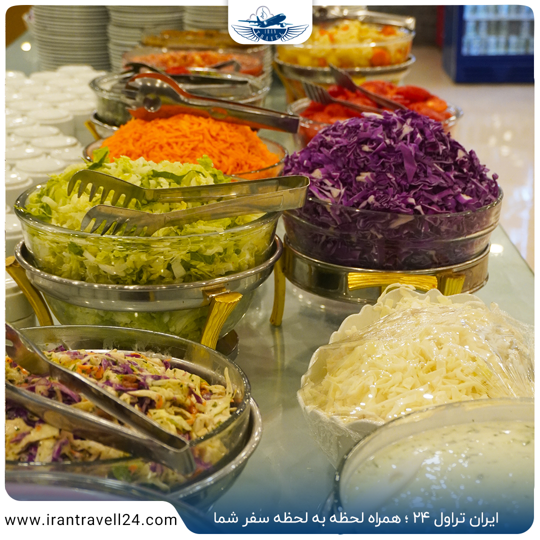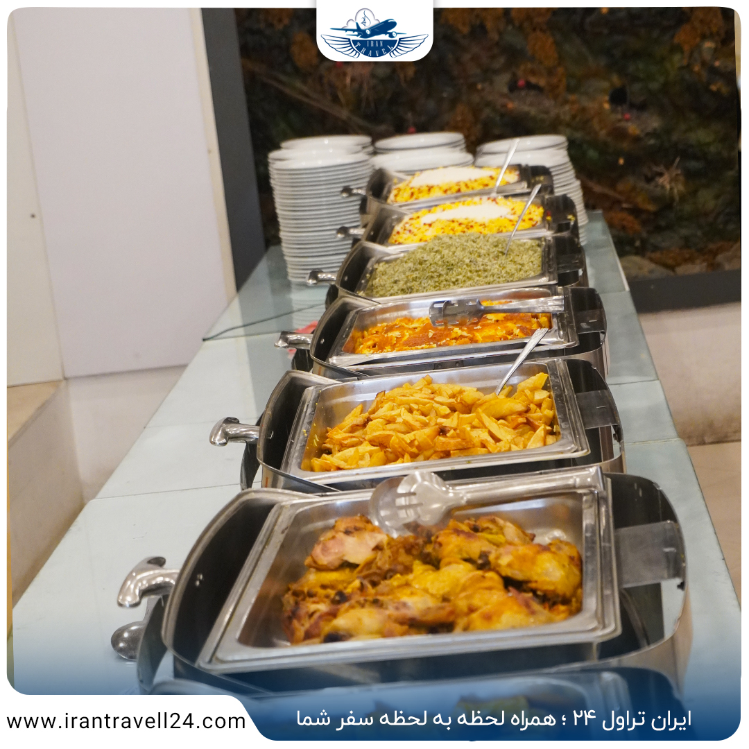 منوی رستوران شامل غذاهای ایرانی و محلی است که به صورت سلف سرویس یا منو انتخابی ارائه میشود. مهمانان میتوانند از وعدهای غذاییشان در فضای دلنشین رستوران لذت ببرند. آشپزان با استفاده از مواد تازه و با کیفیت، غذاهای خوشمزهای را آماده میکنند که از طعم و کیفیت بالایی برخوردارند.