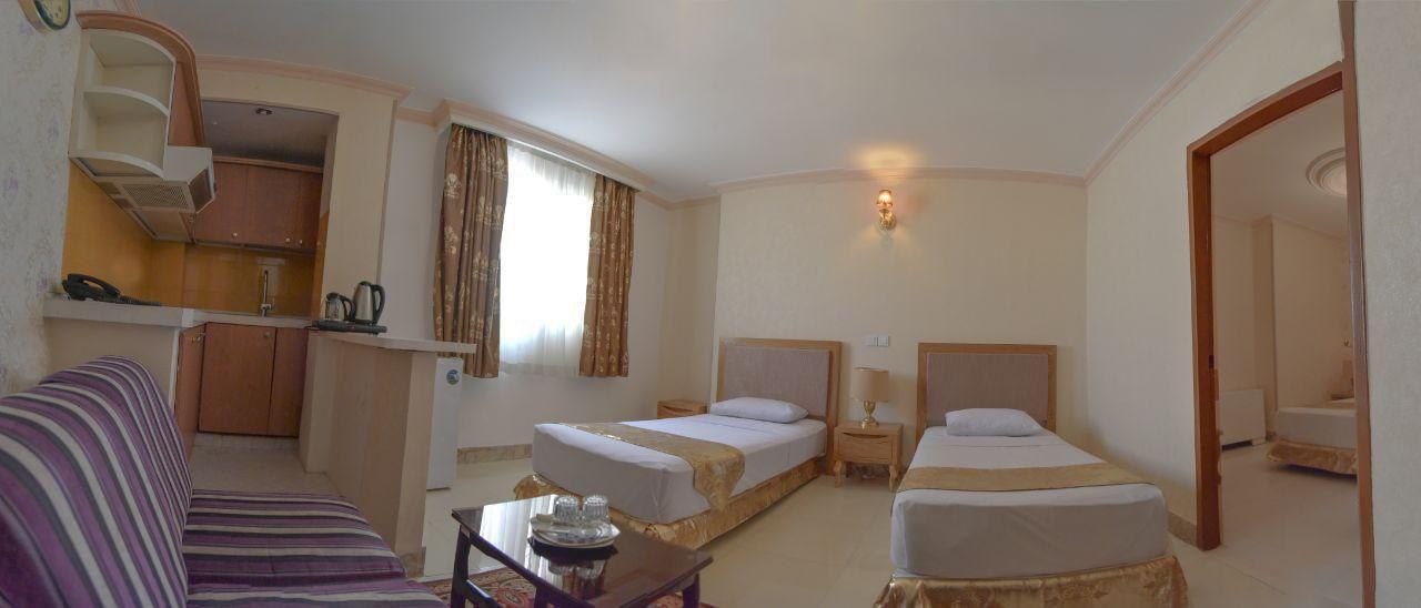 - اتاق های دو تخته: اتاق های دو تخته برای زوج ها یا دوستانی که ترجیح می دهند با هم اقامت کنند مناسب هستند. این اتاق ها نیز با امکاناتی همچون تلوزیون، یخچال، چایساز و سیستم گرمایشی و سرمایشی تجهیز شده اند.