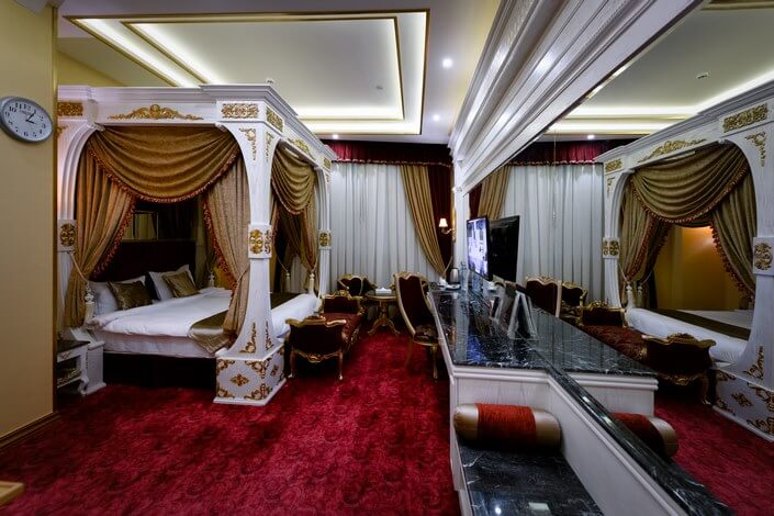 اتاق های هتل رز درویشی مشهد یک تجربه اقامتی بی نظیر را ارائه میدهند. با توجه به تنوع گسترده اتاق ها، این هتل متناسب با نیاز ها و سلیقه های گوناگون مهمانان، بهترین گزینه را ارائه می دهد. سوئیت های هتل با طراحی مدرن و امکانات به روز، همواره توجه مسافران را به خود جلب می کنند. اتاق ها نیز به دسته های مختلفی از جمله اتاق های 3 تخته اکونومی و رویال، اتاق های دو تخته استاندارد و رویال، اتاق های هشت نفره و ... تقسیم شده اند، تا مسافران با توجه به نیاز خود اتاق مورد نظرشان را انتخاب کنند. هر اتاق با امکاناتی همچون سیستم تهویه مطبوع، مبلمان زیبا، سیستم سرمایشی و گرمایشی، حمام با امکانات بهداشتی کامل، سشوار و تمامی ملزومات بهداشتی مجهز شده است. طراحی زیبا و دقیق اتاق ها، به راحتی مهمانان در طول اقامت کمک میکند. همچنین، سوئیت های خاصی نظیر سوئیت رضوان با دو تخت و سوئیت هانی مون با امکانات ویژه همچون جکوزی و سونا، گزینه هایی عالی برای مسافرانی با سلیقه های لوکس و خاص هستند. این تنوع و کیفیت در اتاق ها، هتل رز درویشی را به یک مقصد محبوب برای اقامت در مشهد تبدیل کرده است.امکانات متنوع هتل رز درویشی مشهد